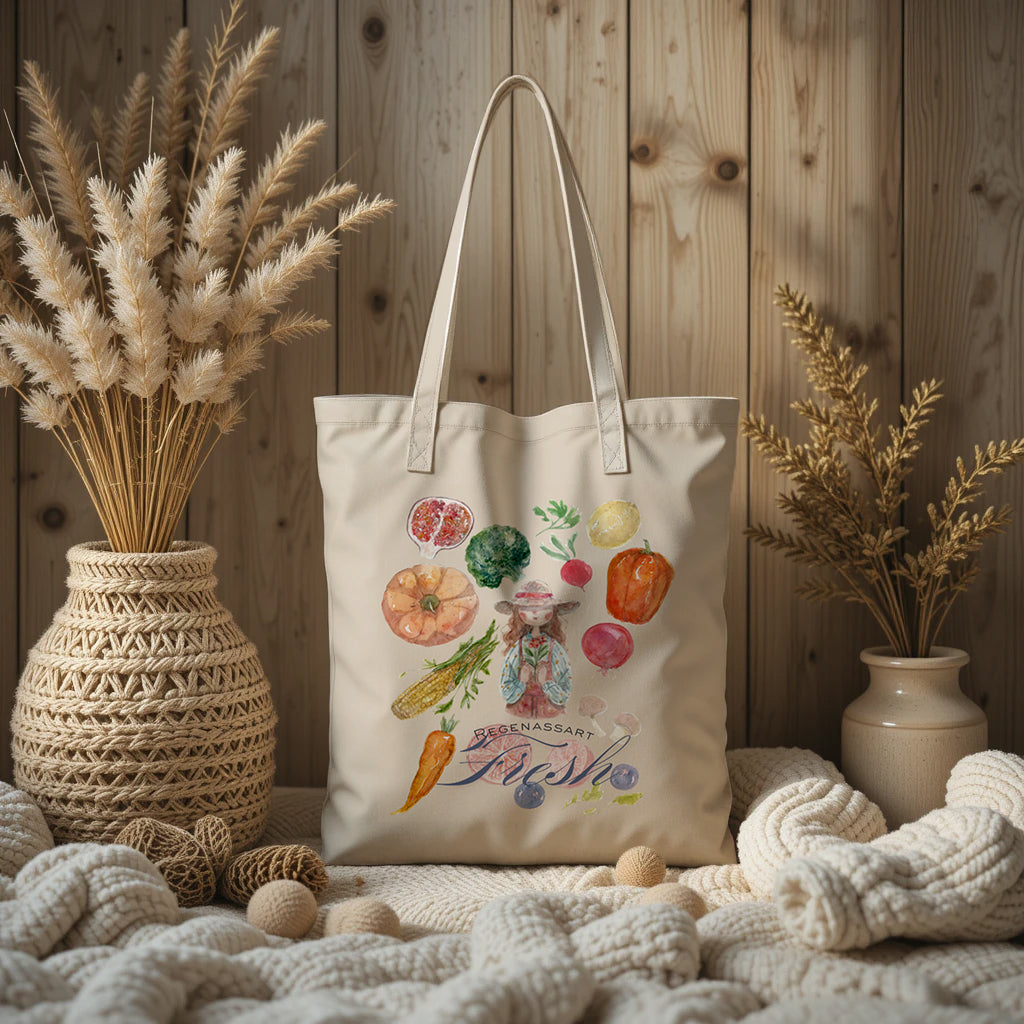 A beautiful fun tote bag with our own design for your grocery shopping or just to take a log on any fun shopping spree. Perfect for eco-conscious individuals who love to bring their own bags while shopping. Ideal for everyday use, picnics, beach outings, and farmers markets.